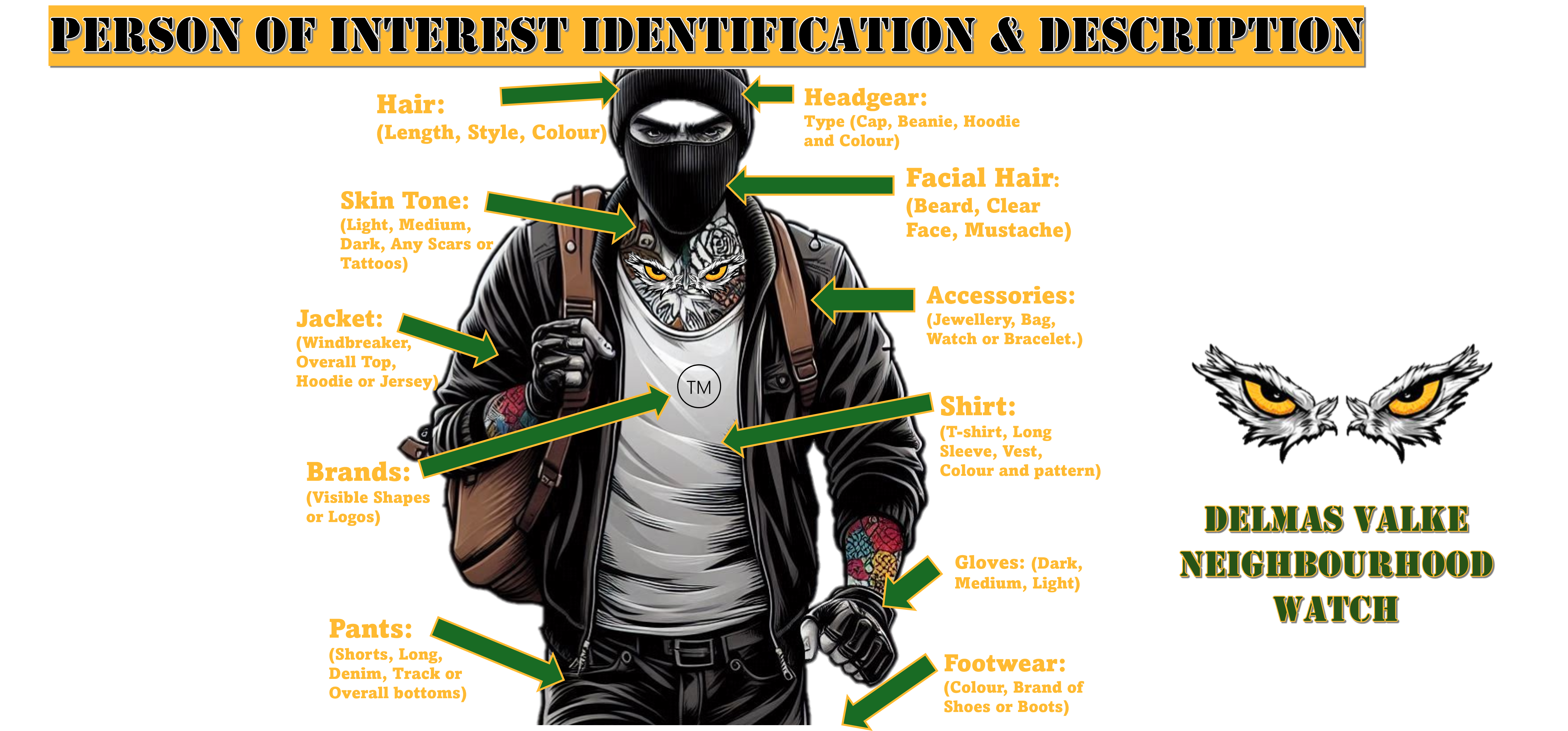 Waarna om op te let wanneer 'n verdagte of verdagte persoon se beskrywing in te gee: